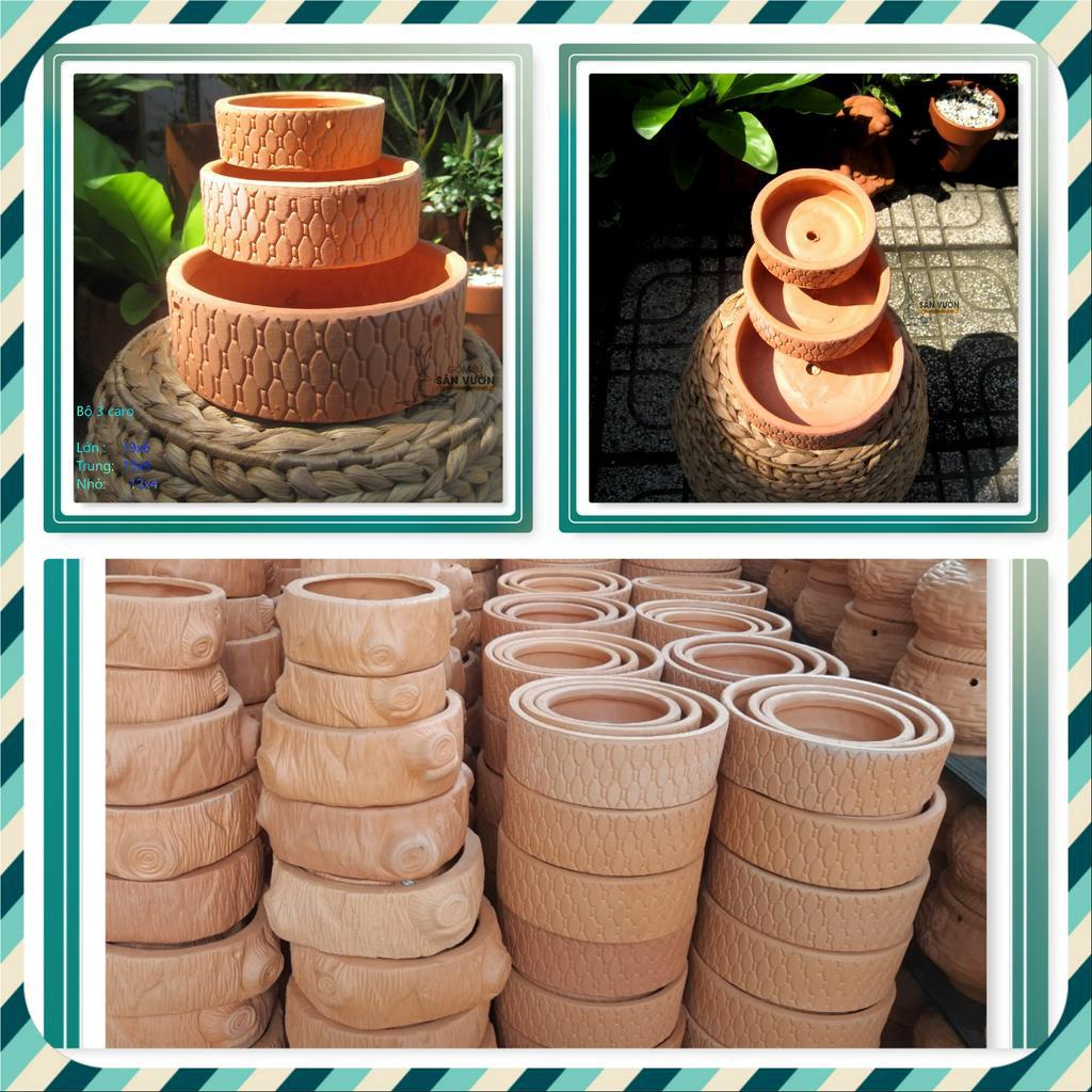 Bộ 3 chậu gốm đất nung SỌC CARO – chậu trồng cây, gốm sứ sân vườn Bình Dương hàng xuất khẩu chất lượng cao.