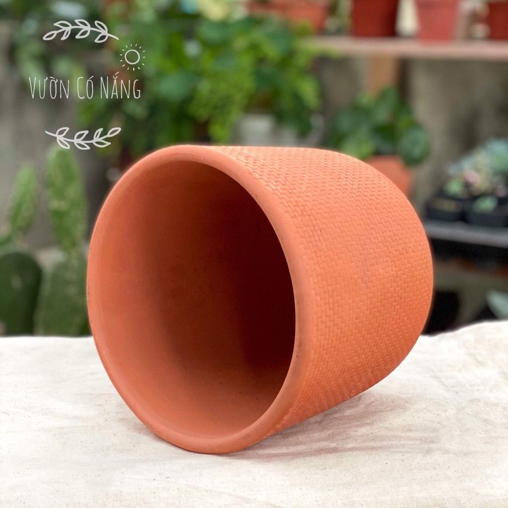 - Dưới đáy chậu có lỗ thoát nước cộng với việc chậu được làm từ chất liệu đất nung, có khả năng hút nước rất tốt, giúp hạn chế tối đa nguy cơ cây bị úng do tưới nước hơi vui tay từ những vị khách yêu cây.