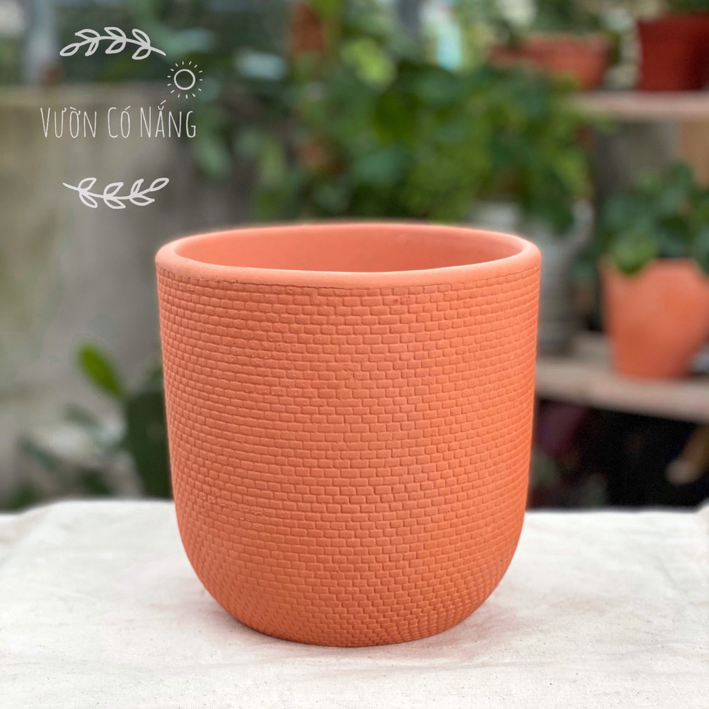 - Sản phẩm thuộc dòng chậu đất nung TRỨNG hiện đại với dáng trụ ở thân và bầu tròn về đáy tạo hiệu ứng dễ thương và bắt mắt.