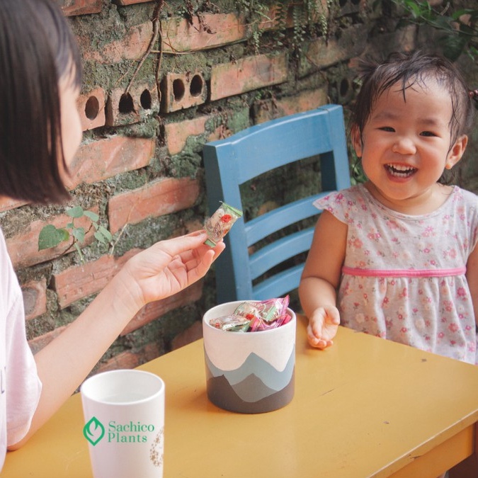 - Chậu cây mini của Sachico có các họa tiết đẹp mắt, đường nét mềm mại và được vẽ tay hoàn toàn bởi đội ngũ sản xuất của Sachico