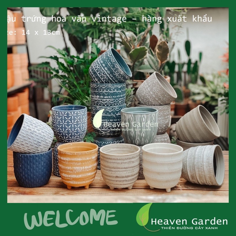 Chậu Đất Nung Trứng Hoa Văn Xuất Khẩu 14cm