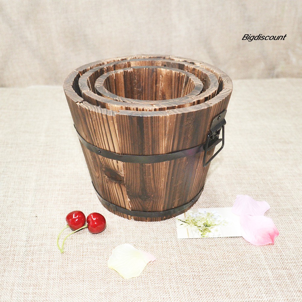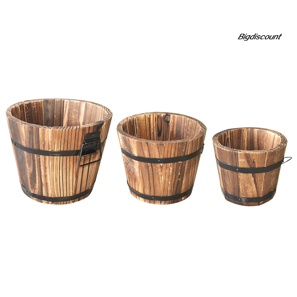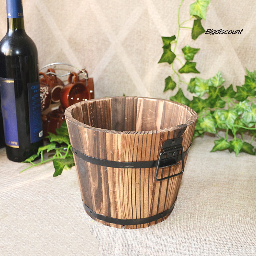 Chậu Gỗ Trồng Cây Hình Thùng Vintage