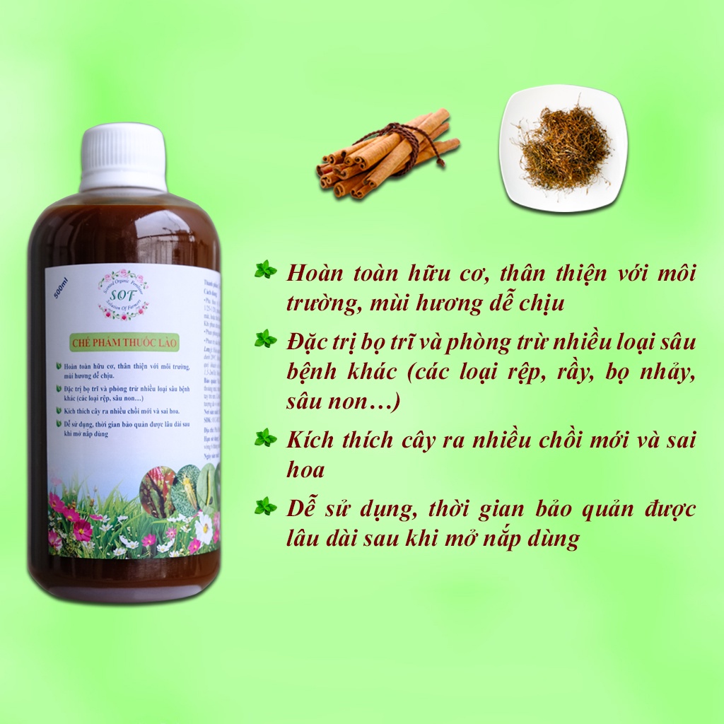 Chế Phẩm Sinh Học SOF Từ Thuốc Lào Và Quế Khô Trị Bọ Trĩ, Rệp, Nhện Đỏ, Sâu… 500ml