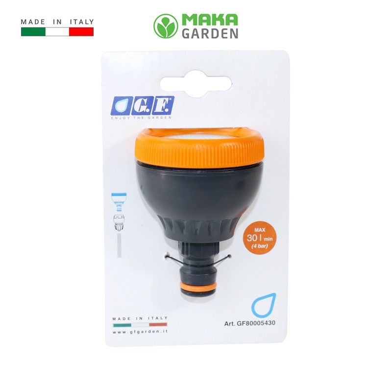 - Vòi tưới cây hoa sen GF5430 được thiết kế và sản xuất tại Ý, chuyên dùng cho tưới hoa và rau, lan. Với kiểu tưới phun mưa dạng vòi hoa sen, tạo ra hạt mưa đều và mịn, nên không làm ảnh hưởng đến hoa hay lá của những cây thân yếu.
