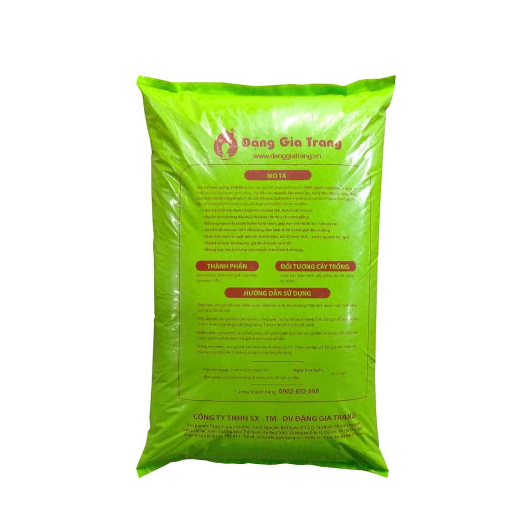 - Giá thể ươm giống SFARM là hỗn hợp được phối trộn từ 100% nguồn nguyên liệu hữu cơ thiết yếu cho giai đoạn ươm giống. Với đầu vào nguyên liệu chọn lọc, xử lý tiêu chuẩn, công thức phối trộn chuẩn chuyên gia và trải qua quá trình ủ vi sinh giúp loại tối đa các tác nhân gây hại, đây là là loại giá thể lý tưởng cho giai đoạn ươm giống.